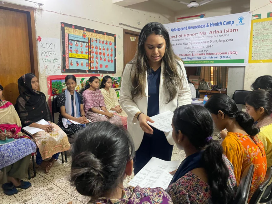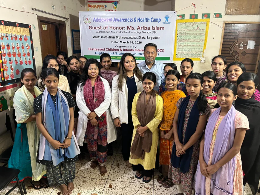 A health awareness and medical camp for adolescent girls was held in Mohammadpur, Dhaka, organized by Distressed Children and Infants International (DCI). The program took place on March 18, with Ariba Islam, a medical student at the New York Institute of Technology, USA, present as the chief guest. Adolescent girls from Ananda Nibas Orphanage and Islami Mission Girls’ Orphanage in Mohammadpur participated in the event. The session focused on promoting health and hygiene awareness among the participants. Trainers, including Ariba Islam, discussed topics such as maintaining a healthy lifestyle, balanced nutrition, the importance and proper use of sanitary napkins, and menstrual hygiene management.